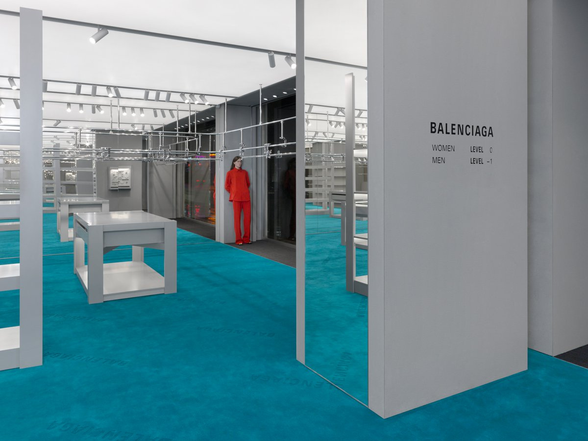 La semaine dernière, dans mes stories Instagram, des annonces pour la toute nouvelle boutique Balenciaga sur Sloane Street (Londres) font inlassablement irruption. Dans l’une des photos de l’aménagement intérieur (vide de tout objet) se trouve, dans un coin, une figure – apparemment pas si à l’aise dans la position adoptée -. Sans vraiment y penser, la posture du mannequin-client·e-employé·e me rappelle les poses distinctes des performeur·euse·s d’Anne Imhof, que j’avais déjà vues exécutées à Venise (Faust) et à Bâle (Angst).