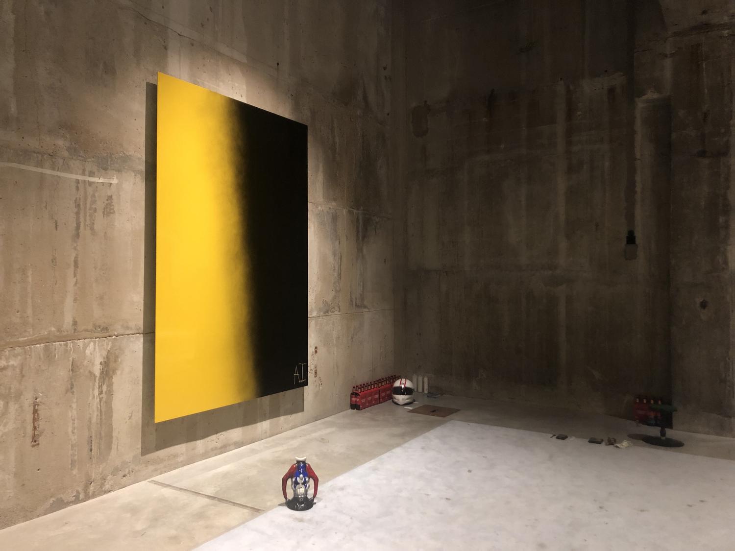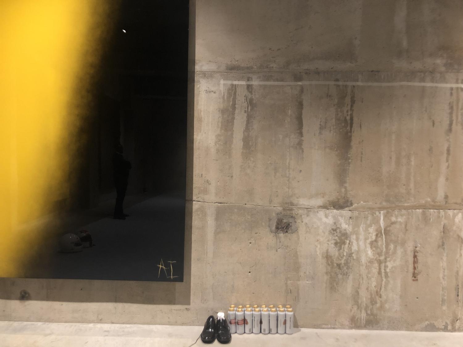 Mais quel est le potentiel pour que la critique de la performativité (par l’intensification de postures et d’attitudes en tant que danse – mais aussi peintures -) affecte les structures qui rendent la performance possible ? Le spectacle de précarité orchestré par Imhof n’existe que grâce à une multinationale et il semble difficile, à travers la performance seulement, de comprendre la politique que défend l’artiste. Peut-être qu’il n’y en a pas, et l’apathie et les artistes sans voix (quand ils ne chantent pas) ne sont présents que pour manifester cet état terminal dans lequel nous nous trouvons (ils ont des casques de moto à portée de main, prêts pour le crash). Cela dit, le versement du sucre Tate et l’utilisation de fouets contre les murs des Tanks semblent vouloir dire quelque chose, bien que les actions, toujours désintéressées, n’impliquent jamais de colère, ni d’émotions du tout d’ailleurs (même les riffs de guitare semblent parfois fatigués). Et encore une fois : qui voit cela ? Les mêmes qui iront à Balenciaga sur Sloane Street ? Je souris.
