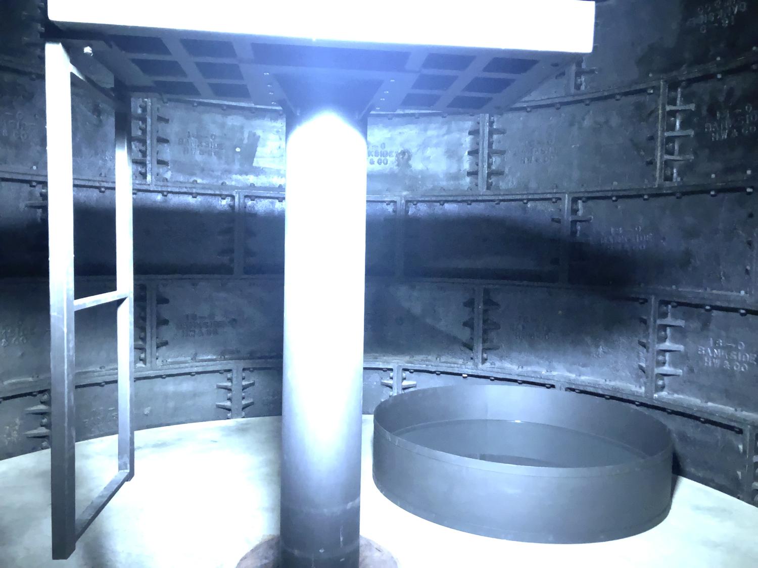 Il est ici intéressant de souligner que le travail d’Imhof a été critiqué à propos d’aspects très similaires : notamment son cynisme, ainsi que l’omniprésence de drogues et alcool (ou substituts) dans ses installations et performances (Sex est ponctué·e de canettes de bières cliniquement installées et on peut repérer, dans le salon, divers appareils – notamment plusieurs balances de poches – consacrés à la consommation de drogues). Plus encore, revenant à sa présentation au pavillon allemand, Benjamin H. D. Buchloh se demande « si elle a pleinement acceptée (et avec joie) les déploiements de verre fascistes [et] massifs de l’architecture d’entreprise » 2. Pour Sex, le verre est ré-employé : cette fois pour délimiter un couloir qui va de l’arrière du quai à la porte de l’espace plateforme. Je me méfie toujours des corps derrière une vitre (encore plus dans le contexte de la Tate). Ok, dans ce cas, ils sont le plus souvent à l’extérieur de ce couloir. Toujours discutable. Pour mieux interroger les politiques de l’oeuvre d’Imhof, il semble opportun de se référer à l’essai de Susan Sontag Fascinating Fascism (1975) (que l’on pourrait traduire par Fascinant Fascisme):