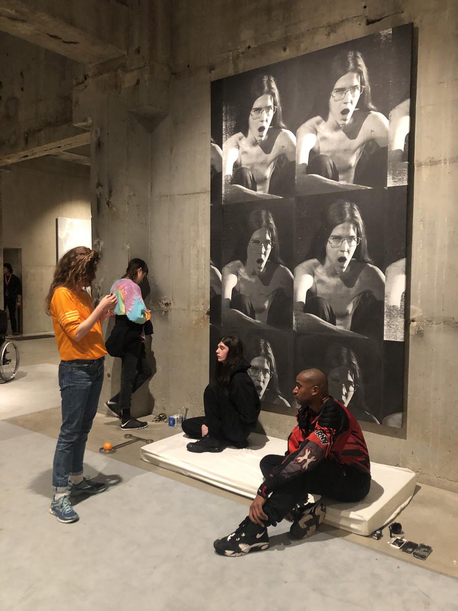 L’un des seuls interprètes de couleur : Josh Johnson, vole la vedette à plusieurs reprises. On a envie de le suivre d’un espace à l’autre. Ce n’est pas possible : le public est invité à entrer et sortir constamment des salles pour accéder aux autres. Le fait qu’Eliza Douglas ait été arrêtée dans sa course par la sécurité n’est pas nécessairement ahurissant (presque tous les artistes portent des vêtements banals. L’un.e d’eux·elles porte un T-shirt Alexia Occasional-Cortez. Certain·e·s arborent aussi des épaulettes et genouillères). Toutefois, la voir quitter son personnage et sourire, là était la grande surprise.