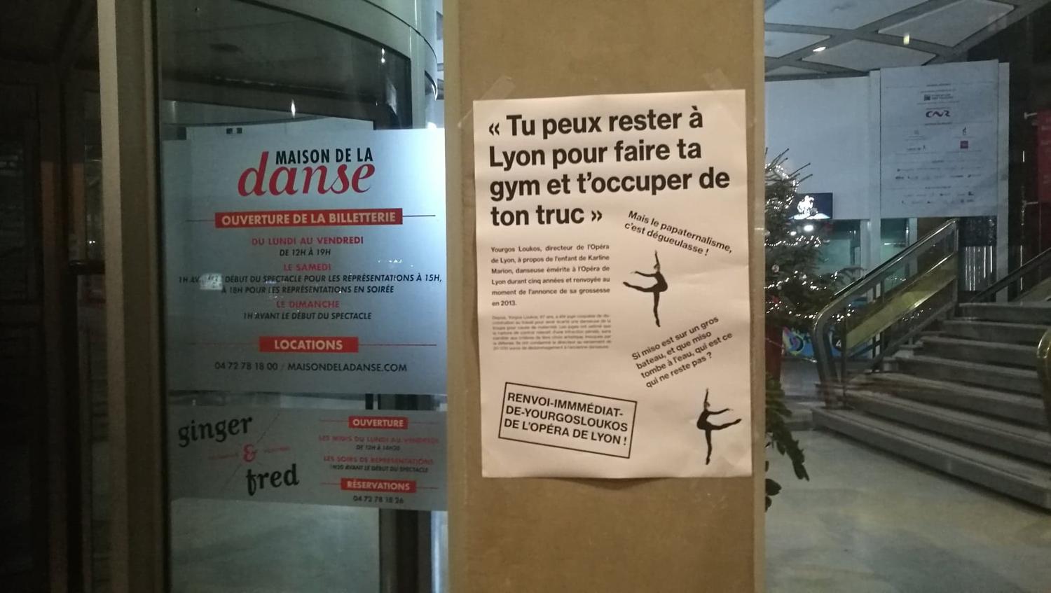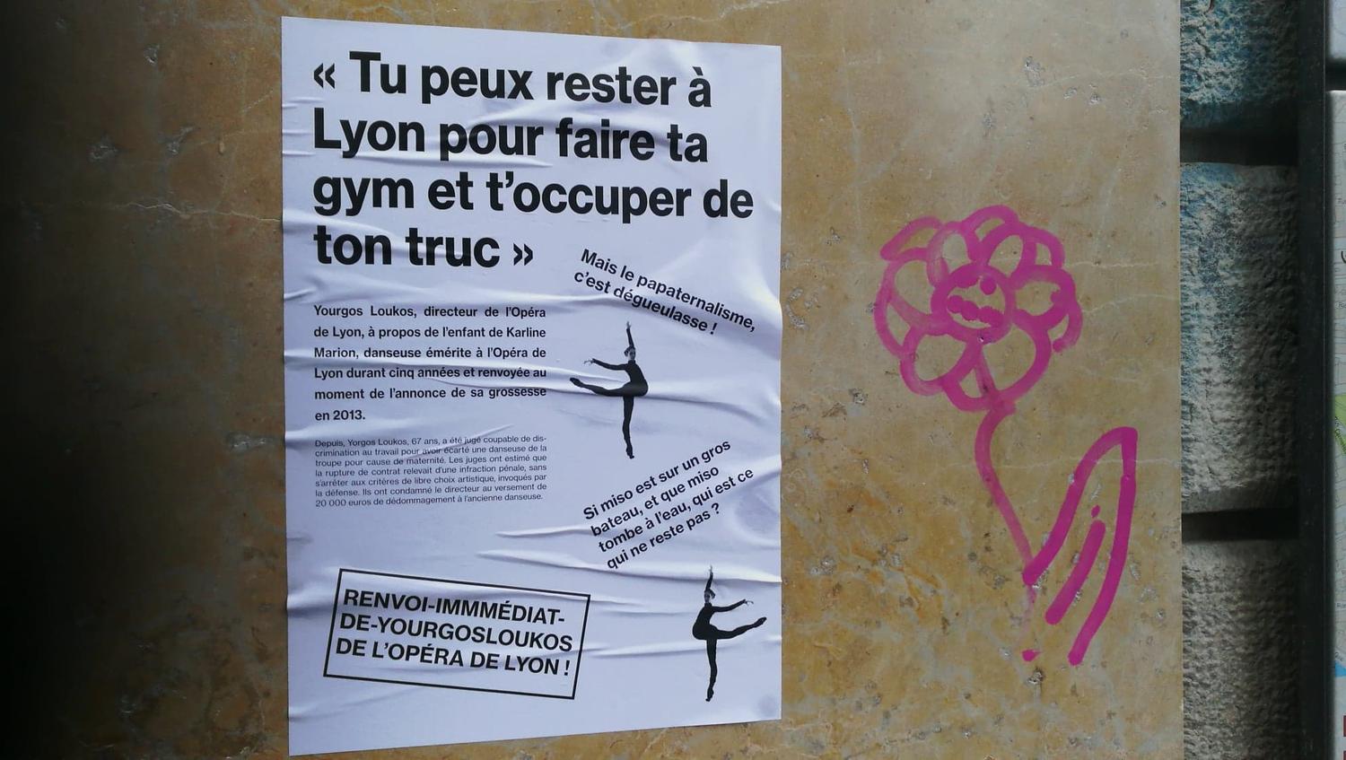 Reçu ce jour des images d’affiches qui furent arrachées très vite sur le bâtiment de l’Opéra de Lyon, mais qui circulent encore aujourd’hui dans la ville ou les murs de lieux culturels, en réaction au récent jugement pour discrimination de Yourgos Loukos directeur de l’Opéra de Lyon envers Karline Marion, ex-danseuse de l’Opéra.
