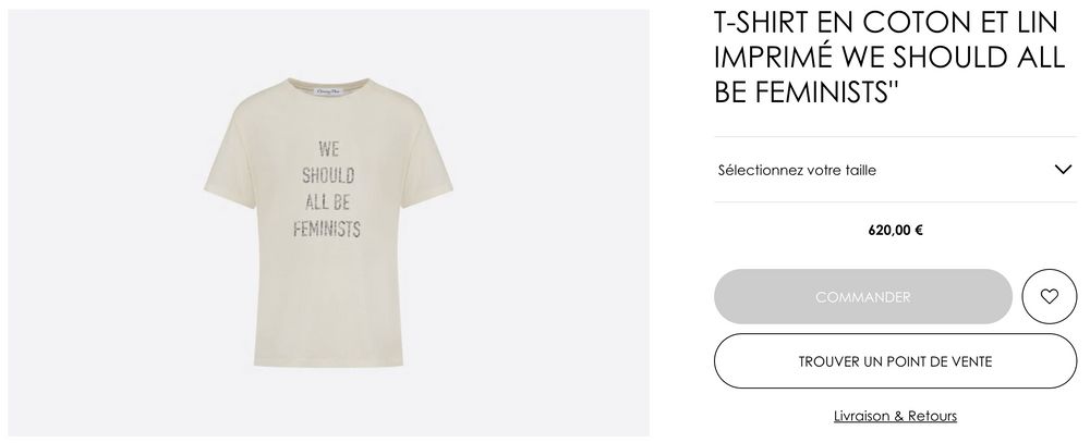 L’utilisation de la formule féministe émancipatrice n’est pas nouvelle pour Dior, qui avait déjà employé le fameux “We should all be feminists” de l’écrivaine nigériane Chimamanda Ngozi Adichie ✊🏽 pour son fameux t-shirt Printemps/Été 2017 à 600 boules 💸. On se souviendra de la citation de cette même autrice à plusieurs reprises par Beyoncé. Il n’en reste pas moins que ce féminisme à formule est devenu l’argument de choix pour perpétuer et légitimer les concepts de succès et richesse, qui vont de pair avec ceux d’oppression et précarité.