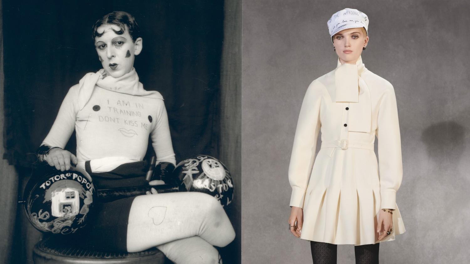 On était ensuite monté d’un cran avec le défilé Automne/Hiver 2018 et le “Women’s Rights are Human Rights” – un hommage à l’esprit soixante-huitard et l’utilisation de Claude Cahun comme inspiration pour la pré-collection Automne/Hiver 2018. Maria Grazia Chiuri commentaient les photos de l’artiste ainsi: « I think in some ways this was the birth of the modern women » (Vogue, 2018). Si cette phrase peut paraître innocente à première lecture, elle devient violente lorsque l’on comprend qu’elle inscrit Claude Cahun dans une histoire conservatrice du féminisme (qui considère deux genres comme seuls modes d’existence), considérant la pratique de l’artiste comme un simple « dragking » et l’expulsant d’une généalogie proto-queer, la ramenant au même instant au genre féminin reproducteur de par la mention de la « naissance ».