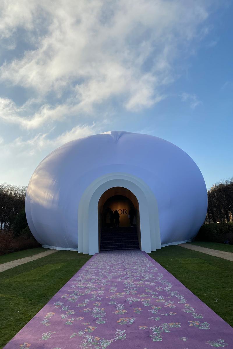 Si l’on en revient aux bannières de Judy, les paradoxes sont aussi multiples : les potentiels mondes à imaginer dans une perspective féministe ne devraient pas se fonder sur une reproduction des structures de pouvoirs que l’on ne connaît que trop bien, mais à travers leur réinvention complète (no rulers at all!!) ; l’étendard questionnant l’existence de la propriété privée au sein même d’un défilé de mode pour Dior (coté à la Bourse de Paris ; Christian Dior Couture a été intégré à LVMH en 2017, et appartient donc à Bernard Arnault, aujourd’hui considéré comme l’un des cinq hommes – et non femmes – les plus riches du monde 💰) est aussi incongrue. Notons d’ailleurs que le Dior Womb, vu du ciel, reproduit très bien l’architecture phallique décriée par Judy Chicago elle-même (horizontalement, certes!).