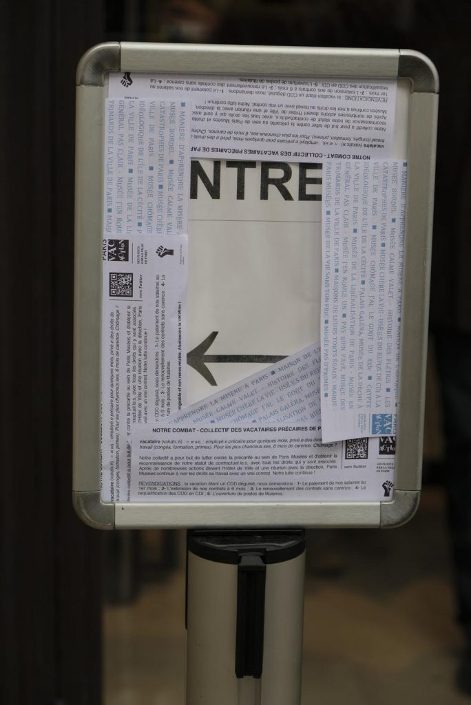 CVPM : Le recours à la vacation est une manifestation de l’emprise croissante des logiques gestionnaires néolibérales dans le secteur culturel, au même titre que la rotation accélérée des expositions et que la multiplication des soirées privées. La vacation est un des symptômes de l’affaiblissement des services publics : notre présence rend manifeste le sous-effectif des agent·e·s de Paris Musées et la dégradation progressive de leurs conditions de travail. Il peut donc y avoir une certaine méfiance des fonctionnaires qui voient d’un mauvais œil tous ces « contrats précaires » (vacataires, contractuel·le·s) et le développement récent des « brigades volantes » (composées de titulaires, mais qui sont amené·e·s à changer de site chaque jour, en fonction de besoins de dernière minute). En outre, le renouvellement systématique des vacataires crée une fatigue, pour les titulaires : il·elle·s voient arriver tous les quatre mois de nouveaux·elles collègues pas ou peu formé·e·s. (et beaucoup nous ont fait remarquer : « Vous avez à peine le temps d’assimiler le fonctionnement des musées que votre contrat se termine »). Le fait que nous militons pour de meilleurs contrats, de meilleures conditions de travail dans les musées, l’ouverture de postes de titulaires – bref, pour une meilleure organisation de Paris Musées, plus conforme à sa mission de service public culturel – nous a apporté une certaine estime de leur part. La plupart ont signé notre pétition, même s’il·elle·s ne se sont pas nécessairement engagé·e·s plus concrètement dans notre lutte.