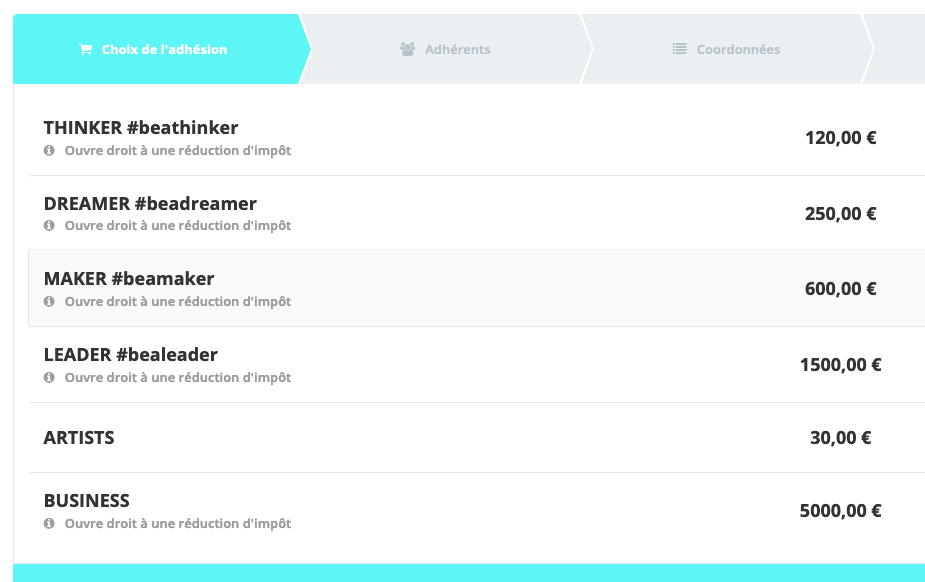 Thanks for Nothing, comme de nombreuses autres organisations culturelles, s’accommode complètement de cette situation en glorifiant l’idée qu’un engagement individuel est bénéfique à la société civile, tout en utilisant des techniques publicitaires racoleuses dignes d’un site de hard-discount en mettant en valeur, à chaque fois qu’un don est mentionné, son montant après déduction fiscale. Selon ces montants chaque donateur·rice·s peut devenir « Thinker » (« pour 120 euros par an, coût réel après défiscalisation 40 euros, le Thinker pense au monde de demain et croit en l’impact positif de l’art sur la société »), « Dreamer » (« participation de 250 euros par an, coût réel après défiscalisation : 85 euros, le Dreamer rêve le monde de demain et croit en l’impact positif de l’art sur la société »),  « Maker » (« participation de 600 euros par an, coût réel après défiscalisation : 204 euros, le Maker réfléchit au monde de demain et s’y projette. Il croit en l’impact de l’art sur la société et visualise l’étendue des possibles »), ou « Leader » (« participation de 1500 euros par an, après défiscalisation : 510 euros, le Leader construit le monde de demain. Il croit en l’impact de l’art sur la société et y contribue au quotidien »). Pour chaque catégorie de soutien, les donateur·rice·s reçoivent des contreparties plus ou moins alléchantes : des invitations aux événements de l’association, une invitation pour la visite d’une collection privée, une invitation insolite avec une personnalité du monde de l’art, un produit dérivé, une adresse email dédiée, etc.