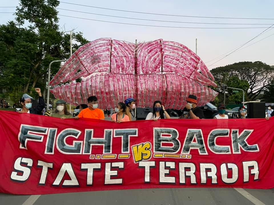 Une troisième — et encore plus inquiétante — intersection entre politique et structures culturelles est le décret présidentiel n°70 de Rodrigo Duterte, aussi connu comme le « schéma national de contre-insurrection». Sa mise en place implique l’ingérence de l’armée et de la police dans les affaires des institutions culturelles. Des membres du CAP ont rapporté la présence de fonctionnaires de l’armée dans les réunions de la NCCA (Commission nationale pour la culture et les arts). En septembre 2019, cette jonction des affaires militaires et culturelles a résulté en la prise en main par l’armée et le gouvernement local de la commémoration du massacre d’Escalante. Cette atrocité, perpétrée par l’armée contre des manifestantxs paysanxs en 1985, est habituellement commémorée par des survivantxs et leur famille. Des artistes et des travailleurxes culturelxs qui préparaient l’événement ont été arrêtéxs et poursuivixs sur la base de fausses preuves. Ce détournement de récits culturels racontés par des survivantxs et par la société civile fait partie intégrante d’un rideau de fumée contre-insurrectionnel par lequel tout désaccord est qualifié de terrorisme en ignorant toute complainte légitime. En assimilant toute opposition à des combattantxes arméxs, ce délire national entretenu par le gouvernement actuel transforme littéralement le domaine culturel en un champ de bataille. En mars 2020, le chorégraphe Marlon Maldos du groupe Bansiwag, à Bohol, a été enlevé et assassiné. C’est arrivé un an après l’arrestation du directeur artistique de Bansiwag, faussement accusé de meurtre. Tout cela est arrivé peu après que Marlon et Alvin aient été fichés comme terroristes par des agences d’État.