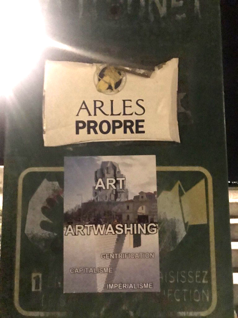inscrit dessus “ART / ARTWASHING / GENTRIFICATION – CAPITALISME – IMPÉRIALISME
